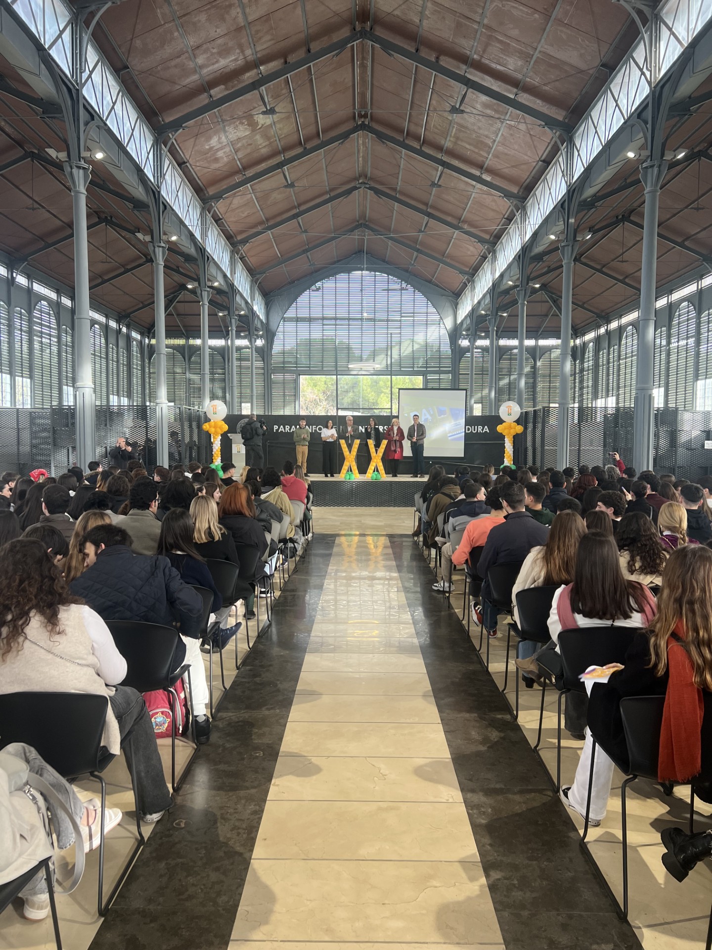 28/02/2025. El Edificio Metálico de la Universidad de Extremadura en el campus de Badajoz, ha recibido el pasado lunes a los primeros estudiantes de 2º de Bachillerato y Ciclos Formativos de Grado Superior que participarán en las XX Jornadas de Puertas Abiertas. Se estimó que asistieran unos 2500 alumnos desde hoy 24 de febrero hasta el día 27 de febrero, para visitar los diferentes centros universitarios.